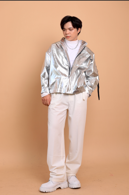 Chất liệu thun poly dày dặn, co giãn vừa phải tạo nên phôm dáng chắc khỏe. Kết hợp cùng simili bạc